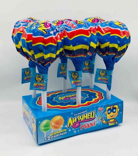 В нашем интернет-магазине Вы можете купить "Карамель на палочке с жевательной резинкой и подарком Лизунец MAXI (для мальчика) 125 гр" по низкой оптовой цене с быстрой и удобной доставкой в г.Красноярск (Красноярский край). Мы предлагаем широкий ассортимент импортных сладостей и напитков от проверенных поставщиков и реализуем продукцию во всех регионах РФ.